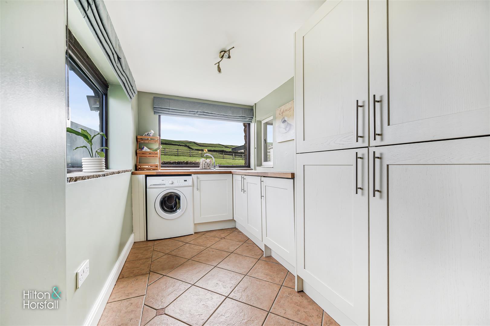 Externally to the front elevation is an enclosed garden with a meticulously maintained laid lawn with mature trees, flowerbeds and a potting area. To the rear elevation is a flagged patio area with space for garden furniture, storage shed, summerhouse, outside water tap and lighting. Surrounded by stunning open aspect views towards the countryside and Pendle Hill, this is the perfect spot for during the Spring / Summer months.
