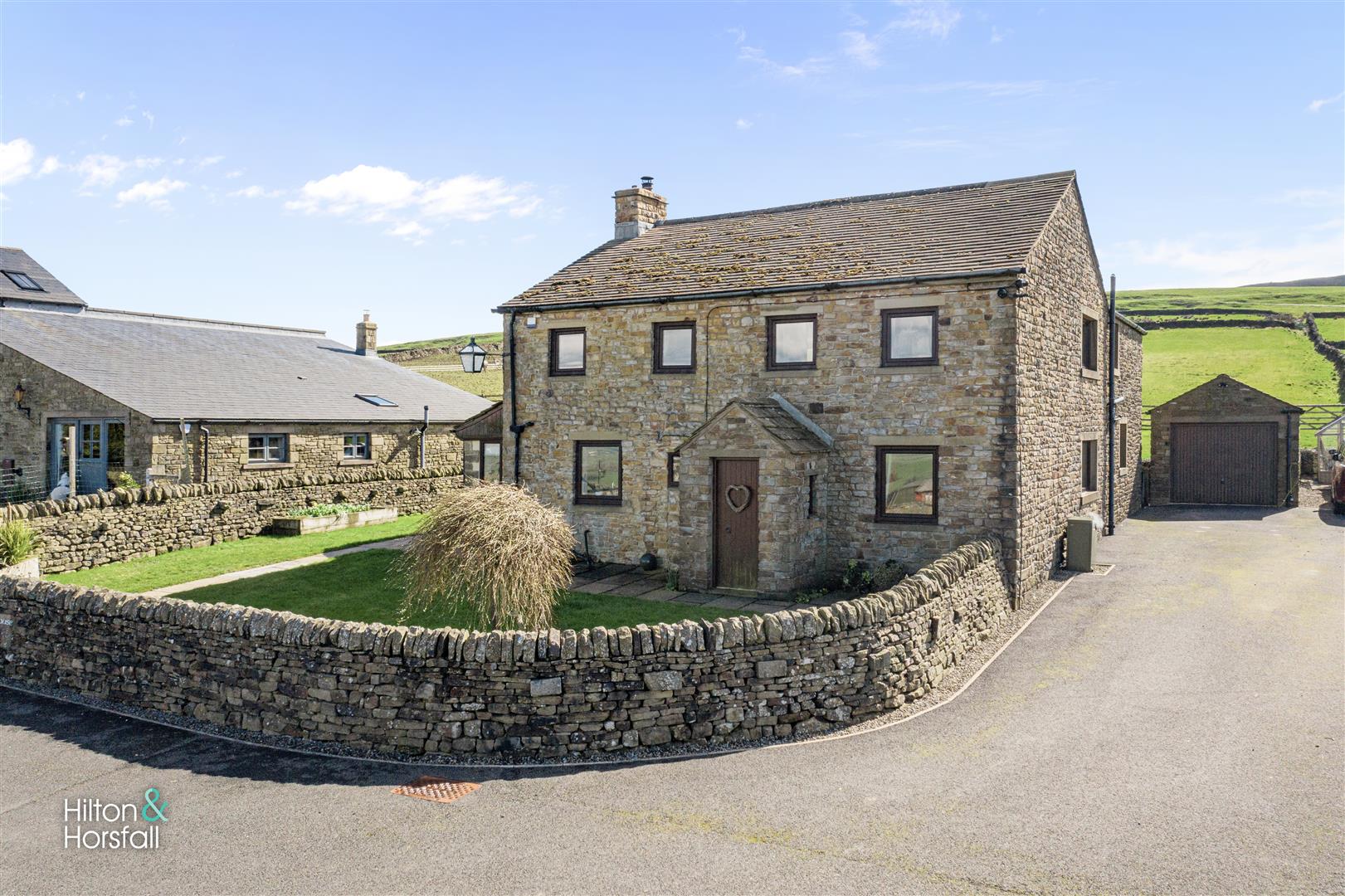 'Coppy house farm'. Located on Brogden Lane, Barnoldswick this generously spaced detached dwelling offers a unique blend of comfort and grandeur. Situated across two floors this property furnishes four well proportioned bedrooms, a bespoke wet room and stunning four piece bathroom suite to the first floor / landing. On the ground floor there is a family sized living room, two additional sitting rooms, dining room, useful utility room, ground floor w.c and a beautifully presented kitchen. Externally to the front elevation is an enclosed garden with a meticulously maintained laid lawn with mature trees, flowerbeds and a potting area. To the rear elevation is a flagged patio area with space for garden furniture, storage shed, summerhouse, outside water tap and lighting. Having the added benefit of a detached garage with a paved driveway providing ample space for off road parking. Surrounded by stunning open aspect views towards the Yorkshire three peaks and Pendle Hill, this is the perfect spot for during the Spring / Summer months. Local amenities, transport links and good schools are a short drive away. Early viewing is highly advised to avoid disappointment.