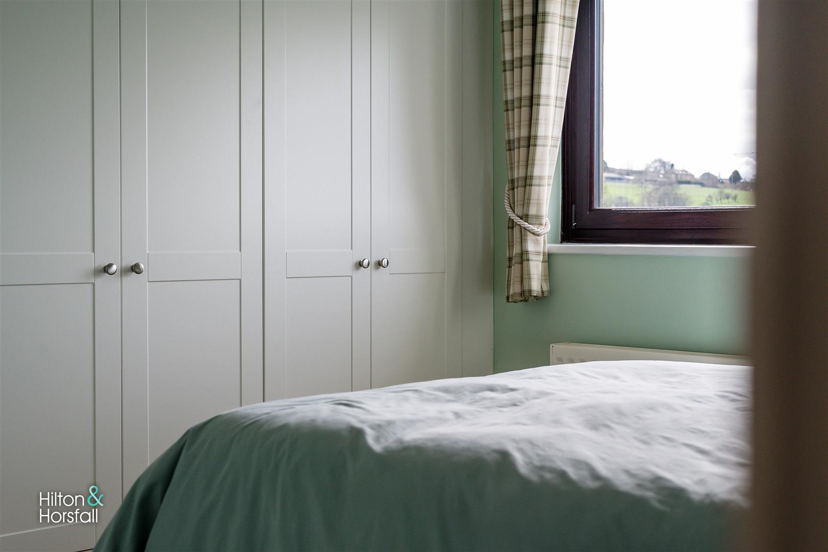 Another bedroom of double proportions with fitted wardrobes, 1x central heating radiator and a composite double glazed window with views towards Pendle Hill.