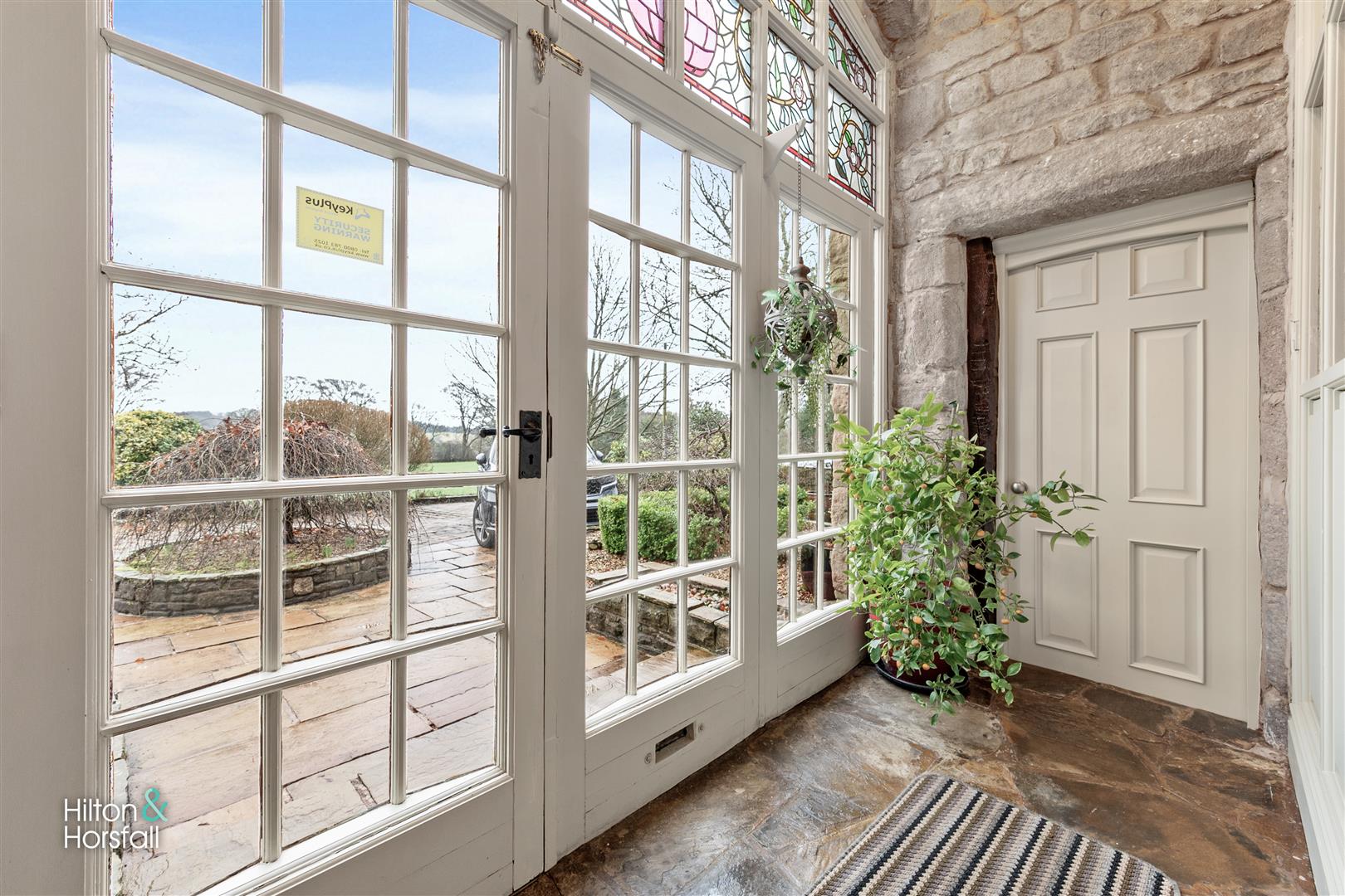 Having stone flagged flooring, exposed brick walls, large double glazed windows to the front elevation and a wood frame door leading out to the front elevation