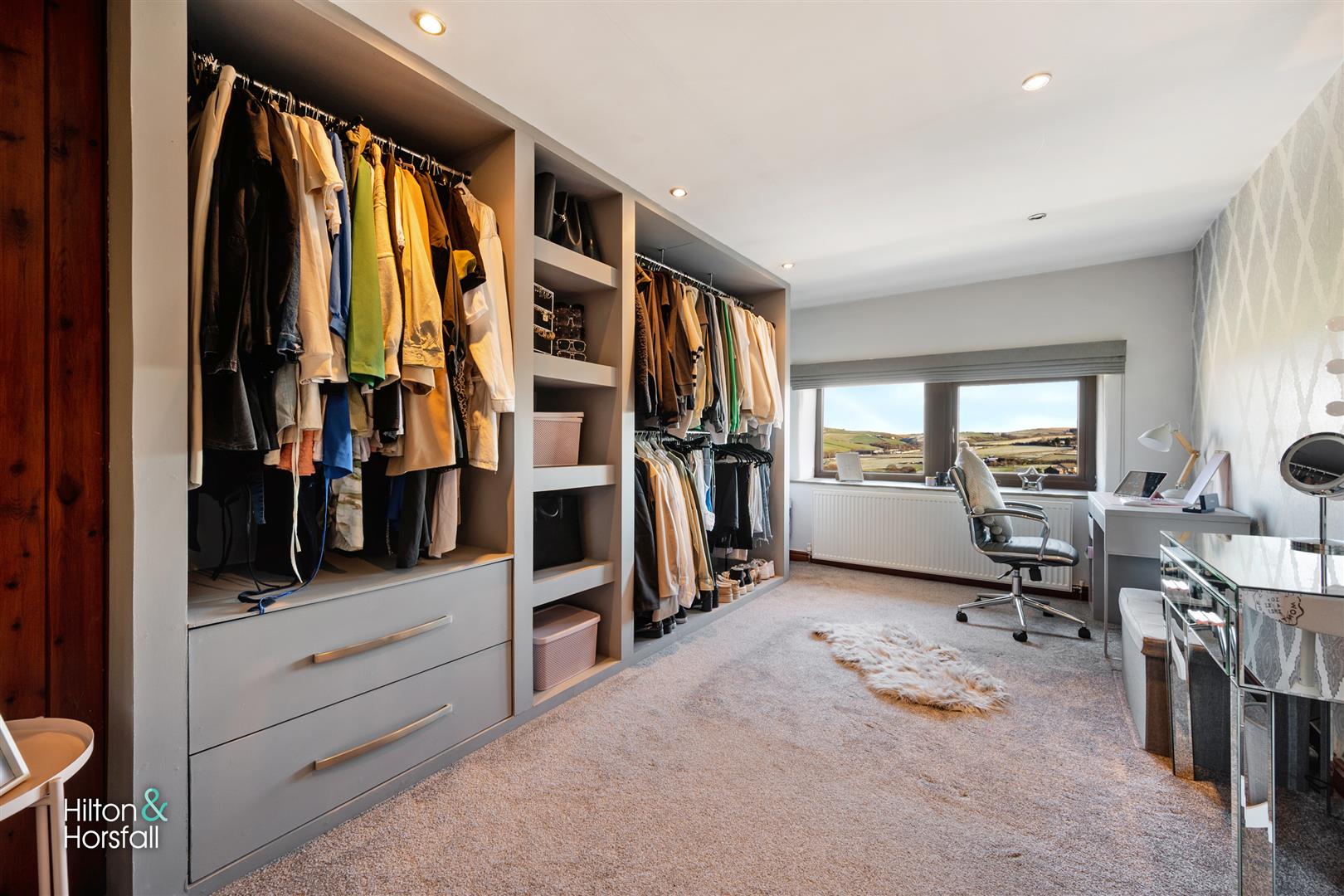 A fourth room of double proportions, currently utilised as a dressing room. Having fitted wardrobes, access to the loft hatch, spot lights, space for a dressing table, 1x radiator and a uPVC double glazed window to the rear elevation offering open views.
