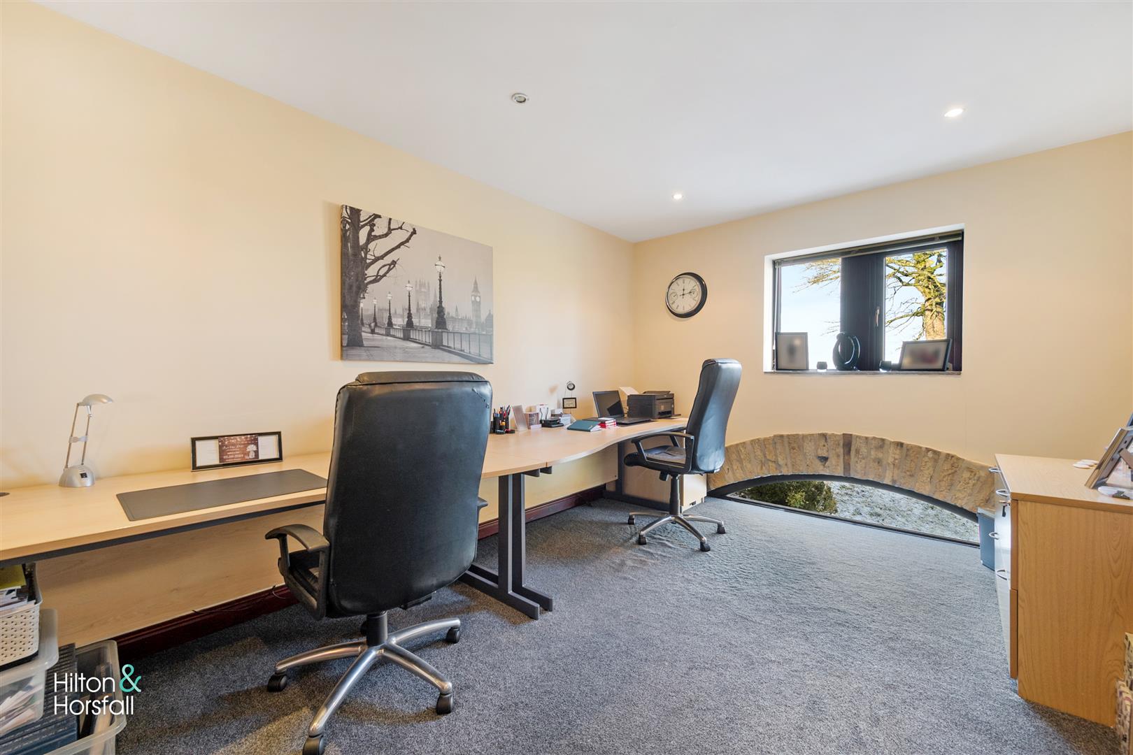 A double room currently utilised as a home office. Having 1x radiator, recessed spot lights, original semi-circular window to original stone barn arch and a uPVC double glazed window to the rear elevation.