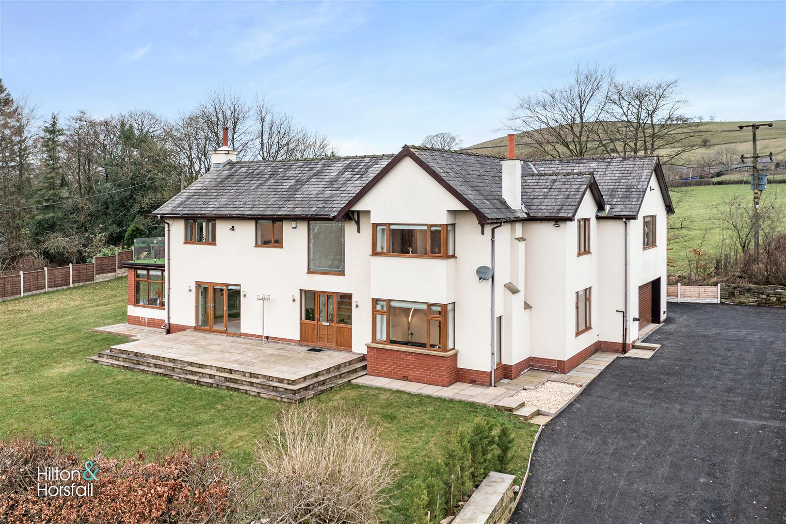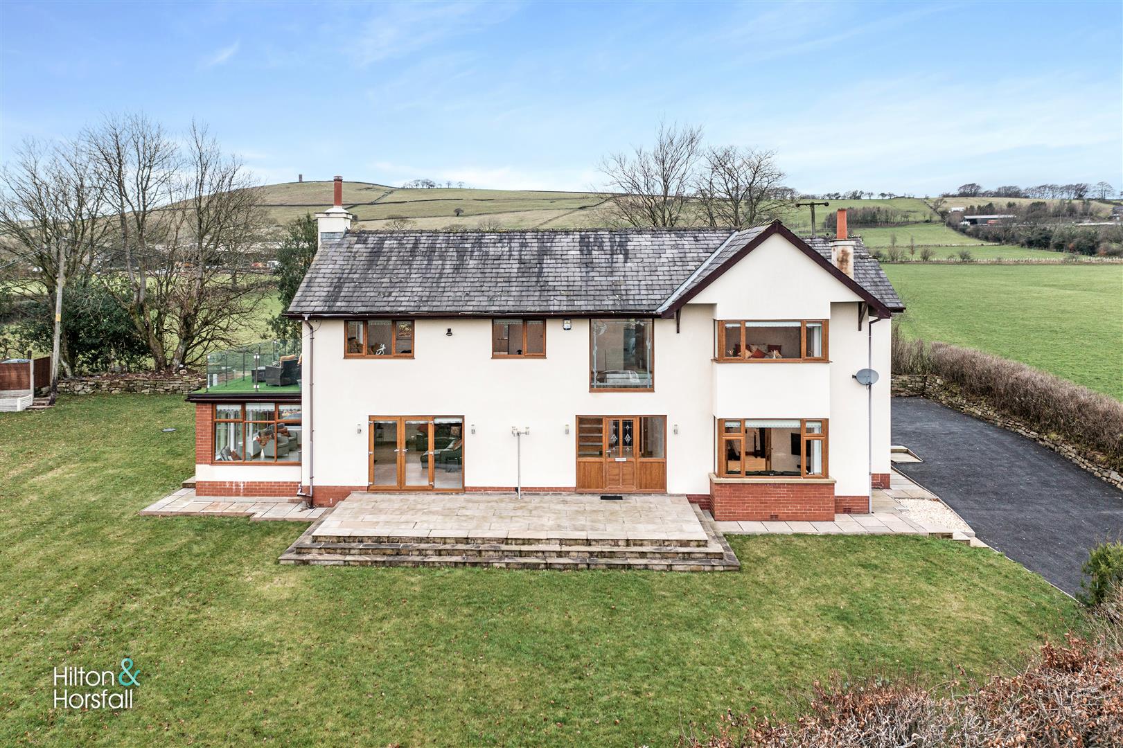 Externally to the front elevation you will find a large paved driveway offering ample space for off road parking, a mainly laid lawn with mature trees and shrubs, an elevated flagged patio area with space for garden furniture overlooking the stunning countryside views. To the side and rear elevation you will find further flagged patio areas, outside electrics and lighting. The perfect garden for the Spring / Summer months.